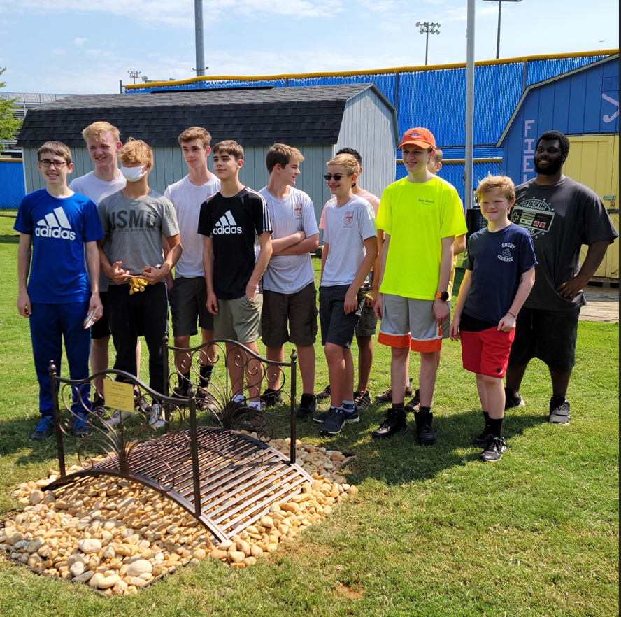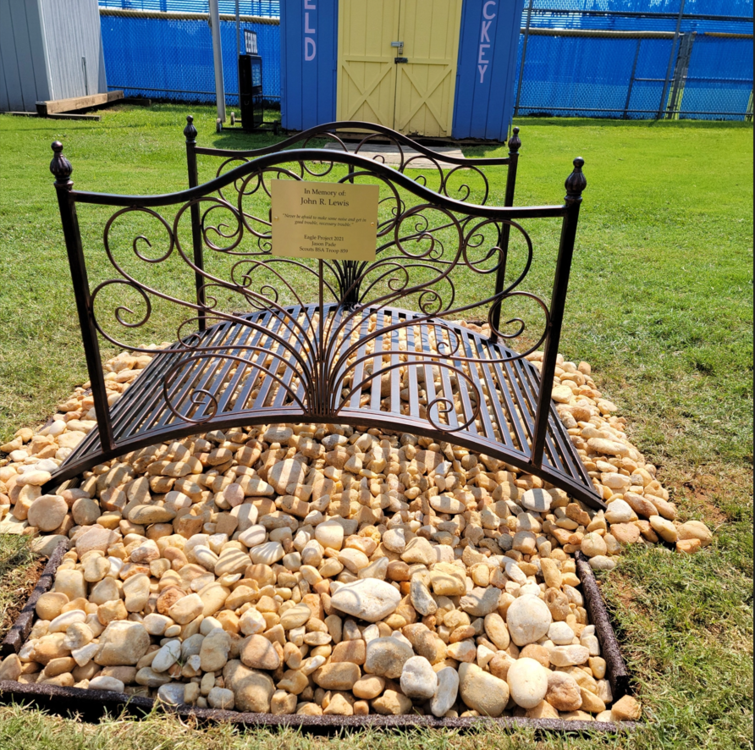 He completed his Eagle project yesterday. Well, Miss Utility didn't come on Friday to mark any utility lines, so planting a couple of trees will wait or not be done. His high school recently was renamed from Robert E. Lee to John R Lewis High School. The crew built a decorative bridge to symbolize the march on Selma. The grass was removed and leveled. Weed barrier was installed as was river rock. It ended up being a bit more work than expected.